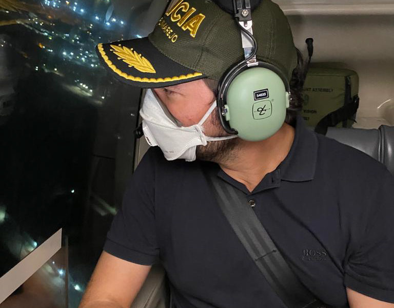 Posteriormente, el mandatario de los barranquilleros continuó el patrullaje en el helicóptero Halcón de la Policía Nacional, dotado con cámaras de detección infrarroja de calor y otros dispositivos de vigilancia que permiten detectar aglomeraciones para que las autoridades puedan intervenir.