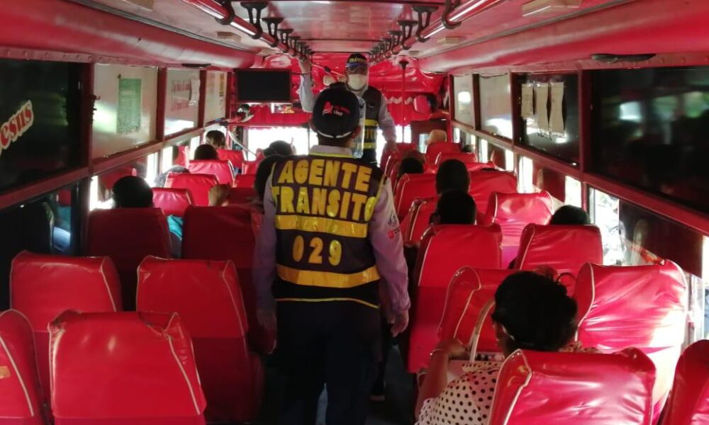 Agentes del Instituto de Tránsito del Atlántico y Policía de Carreteras, realizan operativos con el fin de garantizar el cumplimiento de las medidas de bioseguridad en el transporte público intermunicipal.