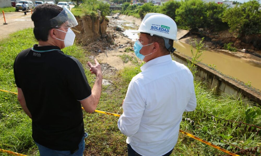 El alcalde de Soledad, Rodolfo Ucrós Rosales, realizó un recorrido este viernes junto al secretario municipal de Obras Públicas, Jaider Molina y la firma interventora, en el punto de interconexión ubicado entre los arroyos El Salao y El Platanal, con el fin de supervisar su estado antes del inicio de la intervención en dicho canal.