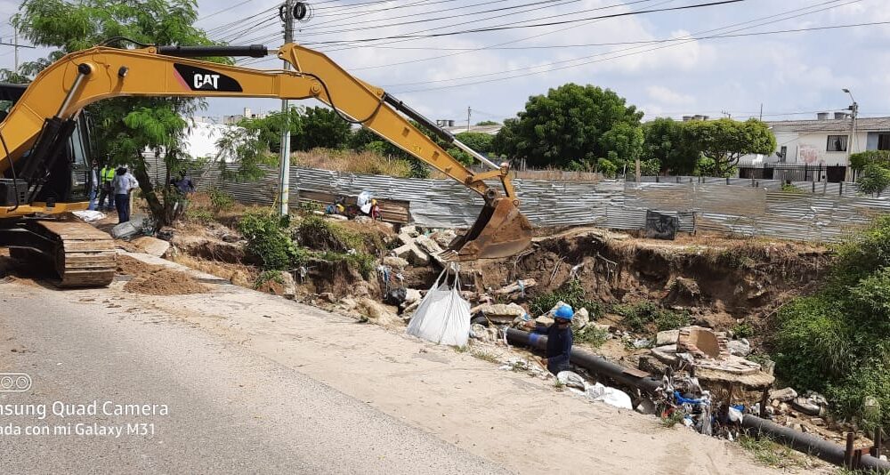 La Alcaldía de Soledad y la empresa Triple A desarrollan trabajos en zonas donde taludes y laderas del arroyo El Platanal presentan mayor erosión por causa de las fuertes lluvias.