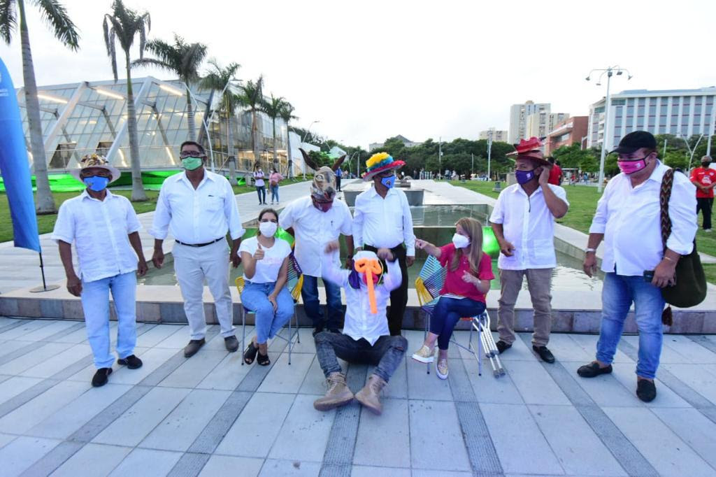 En la Plaza de la Paz, la mandataria departamental estuvo acompañada del director de Patrimonio del Ministerio de Cultura, Alberto Escovar; la secretaria de Cultura y Patrimonio, Marcela Dávila, y siete representantes de manifestaciones artísticas y culturales del Carnaval del Atlántico que, trasladará su escenario habitual a nuevas dinámicas que permitan acercar sus expresiones a los hogares de atlanticenses, colombianos y extranjeros bajo el concepto: ‘Del Atlántico para el mundo’.