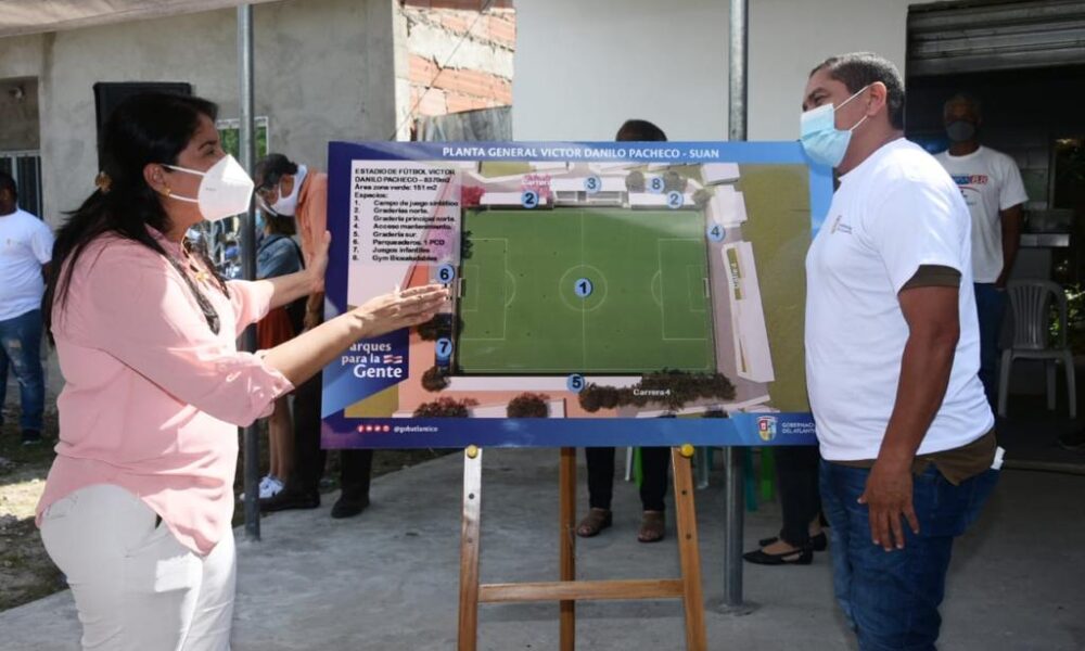 “En Suan, la pasión es el fútbol y por eso el primer escenario que escogió la comunidad, dentro del programa ‘Parques para la Gente’, fue esta cancha. A partir de hoy, con el inicio de las obras, se empieza a hacer realidad el sueño de transformar este espacio en un verdadero estadio de fútbol municipal. Todas estas obras tienen un propósito de utilización y por eso para su ejecución intervienen la Secretaría del Interior, Indeportes, las consejerías de Convivencia, Seguridad, y para la Inclusión de la Población con Discapacidad. Esperamos que la comunidad también se comprometa con el cuidado de este espacio y se apropien de él cuando entreguemos la obra”, sostuvo la secretaria de Infraestructura, Nury Logreira.