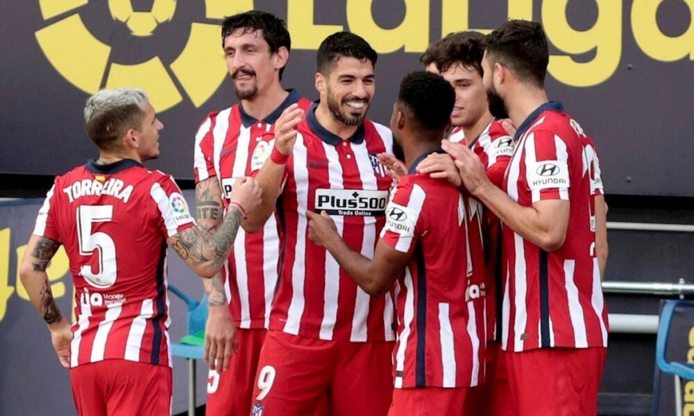 Con dos anotaciones del uruguayo Luis Suárez y goles de Saúl Ñíguez y Koke Resurrección, Atlético de Madrid venció al Cádiz, 4-2 ratificando su liderato en Liga del fútbol español.