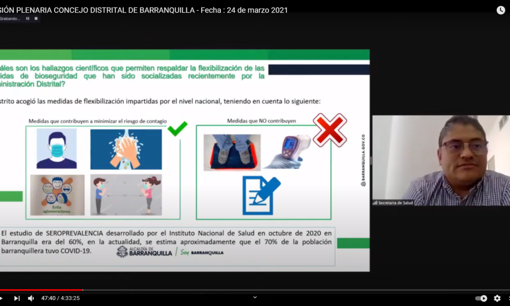 Ante la sesión plenaria del Concejo Distrital de Barranquilla, el secretario de Salud Distrital, la secretaria de Gobierno y el jefe de la Oficina de Seguridad y Convivencia Ciudadana rindieron informe sobre las estrategias llevadas a cabo para el manejo de la pandemia y