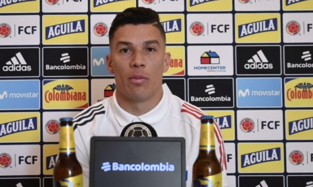 Matheus Uribe, jugador de la Selección Colombia en rueda de prensa. Foto: captura de video. FCF.