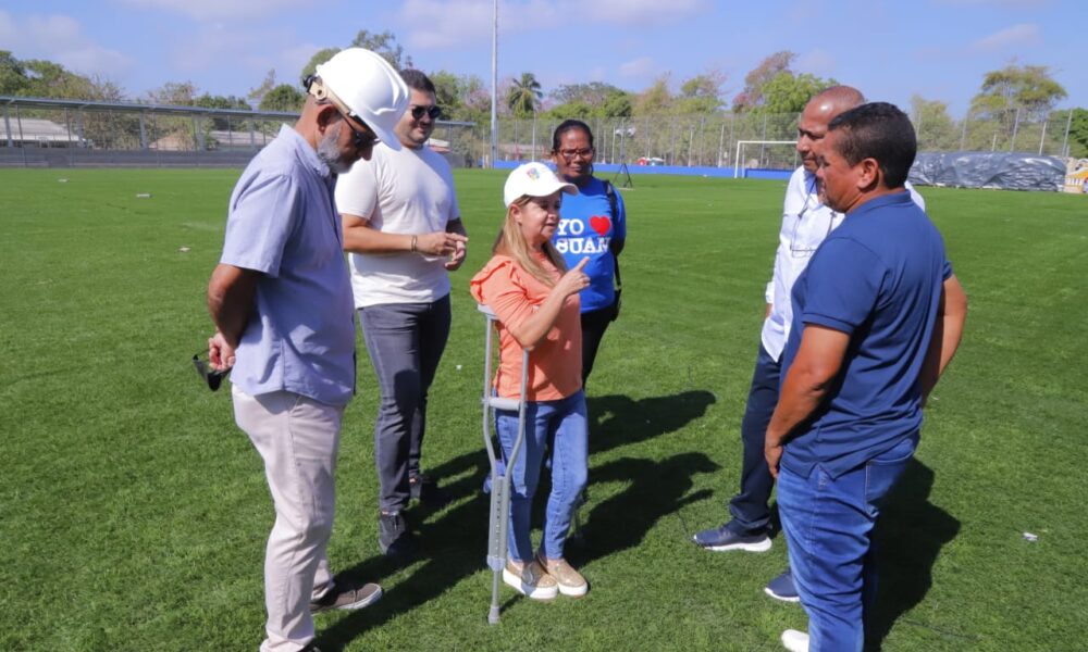 Posteriormente, la Gobernadora visitó las obras del estadio, en compañía del futbolista Víctor Danilo Pacheco, y anunció que desde el próximo 11 de marzo la comunidad podrá disfrutar de este nuevo espacio recuperado para la recreación, el deporte y la sana convivencia. “Este gran escenario cuenta con una cancha de fútbol profesional en superficie sintética, juegos infantiles, gimnasio biosaludable, parqueaderos, zonas verdes, senderos inclusivos e iluminación led”, agregó Noguera.