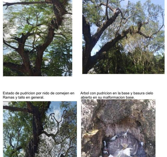 El concepto técnico, agrega además que el tronco presentaba una herida a una altura de 4 metros aproximadamente, desde la cual drenaba un líquido negro (exudado), así como afectación en sus ramas por comején, como otras heridas mal cicatrizadas con pudrición y cavidades producto de ramas que se habían partido o quebrado.