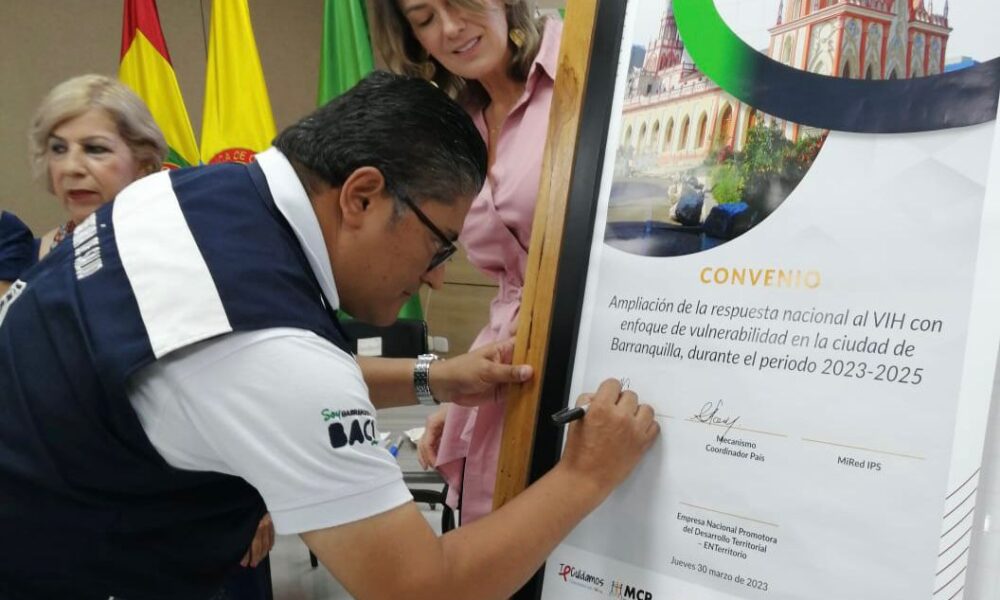 La Alcaldía de Barranquilla y la Empresa Nacional Promotora del Desarrollo Territorial – ENTerritorio- firmaron el convenio del año 2023, documento mediante el cual se da continuidad al proyecto para fortalecer la respuesta al VIH con enfoque de vulnerabilidad, en población sexualmente diversa y migrantes venezolanos que residen en la ciudad.