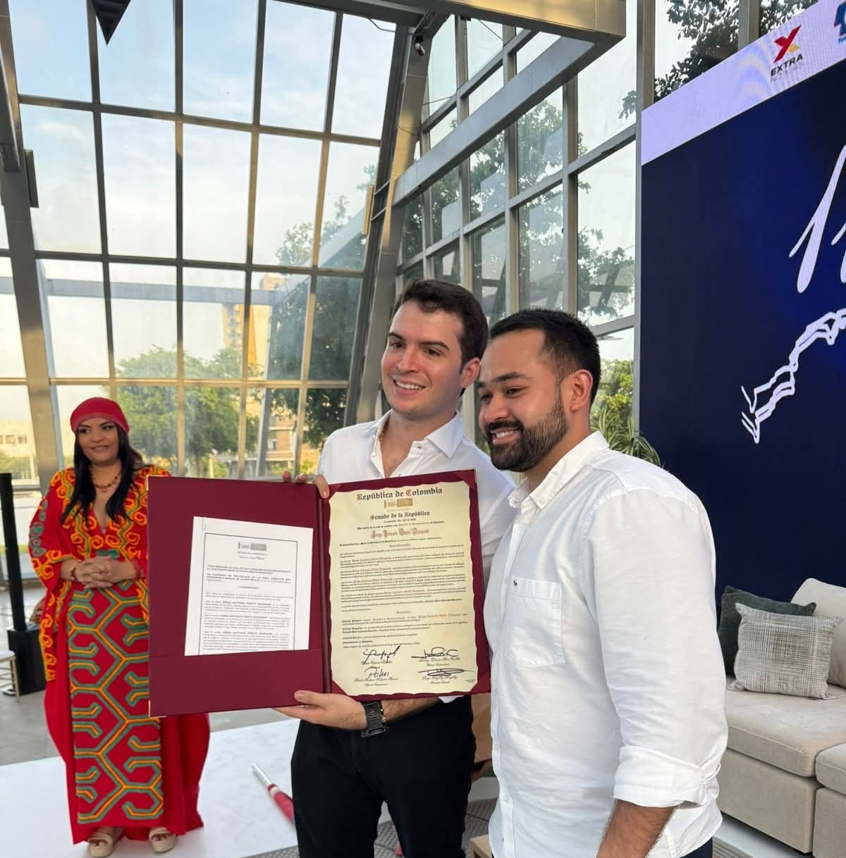 El senador de la República Antonio Luis Zabarain Guevara, entregó un reconocimiento a Jorge Antonio Oñate Dangond, hijo del desaparecido cantante de música vallenata Jorge Oñate.