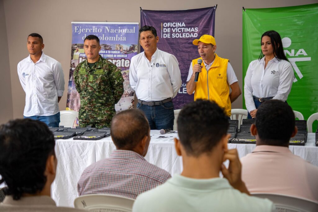 El coordinador de la Oficina de Víctimas, Orlando Montiel, destacó que para el próximo año se proyecta ampliar la oferta de formación para esta población en alianza con el SENA, con cursos de mecánica automotriz, electricidad, soldadura, entre otros. Señaló que Soledad es el municipio número uno a nivel nacional en la entrega gratuita de libretas militares y que, además, hace parte del Centro Regional CRAV, donde se atiende a más de dos mil quinientas personas, formándolas para que no cojan un arma o una piedra, sino una herramienta de trabajo, con el fin de prevenir que los jóvenes caigan en la delincuencia.