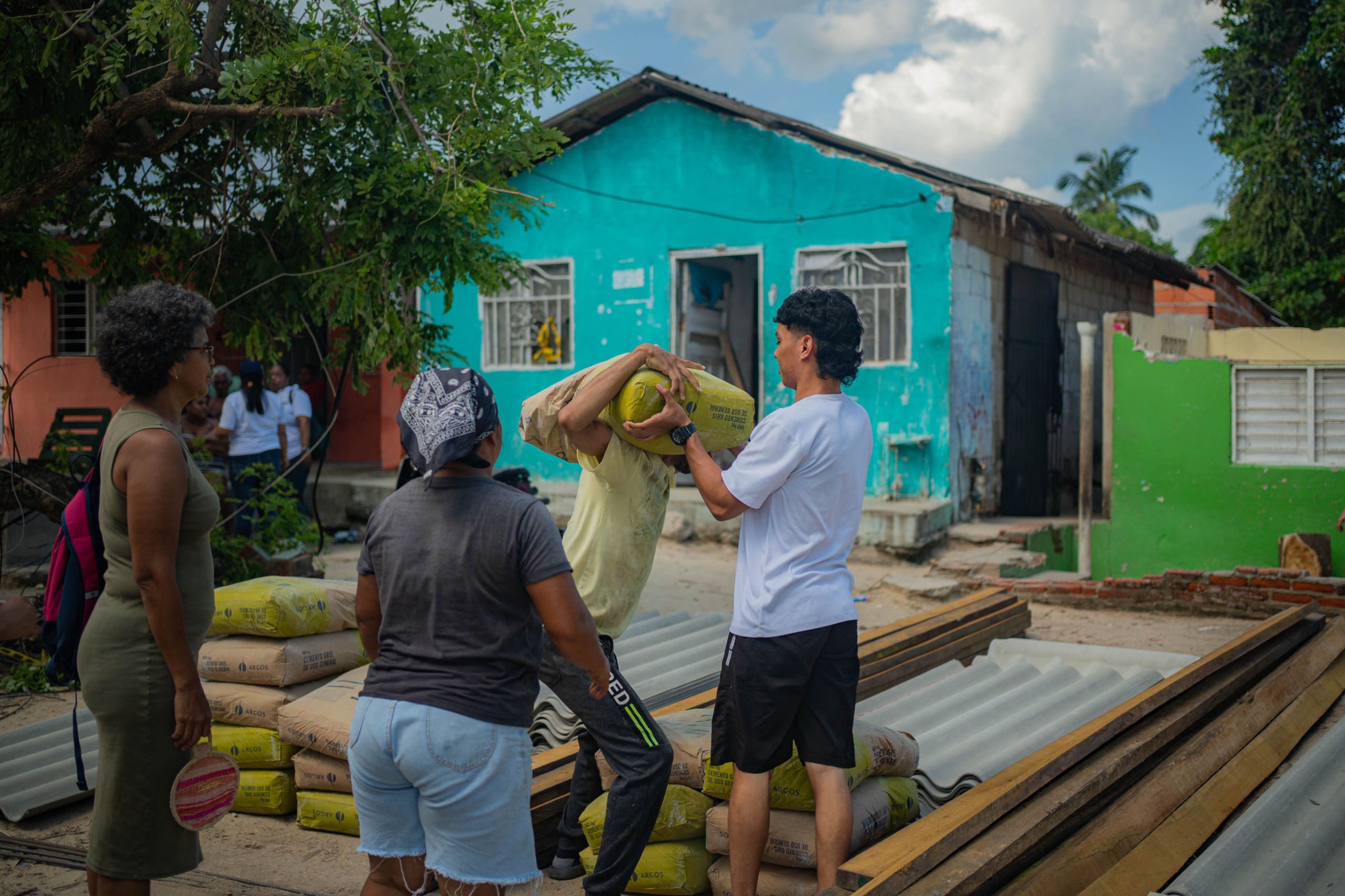 La Alcaldía de Soledad hace entrega de ayudas humanitarias a las familias del barrio Pumarejo, que resultaron afectadas por el vendaval ocurrido el pasado 3 de octubre, que como consecuencia de los fuertes vientos, levantaron de su raíz un árbol de Bonga, el cual cayó sobre el frente de las casas afectadas.