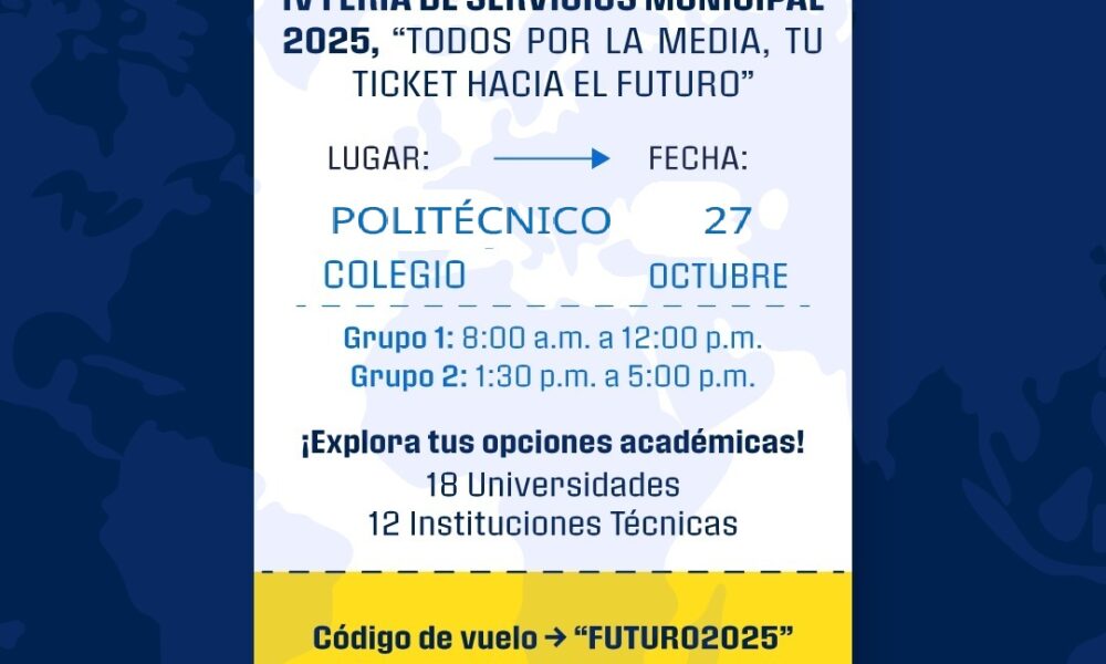 Feria Municipal de Servicios “Tu tiquete hacia el futuro” se realizará el 27 de octubre