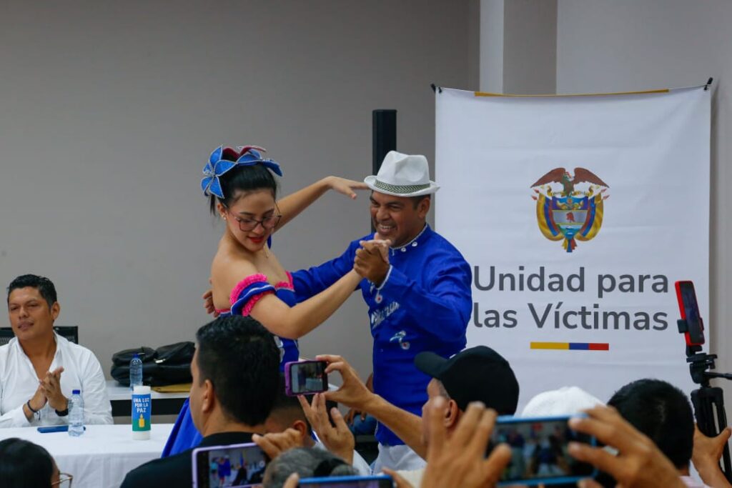 Durante la jornada se presentó una muestra artística de baile de merecumbé, y se hizo entrega de un detalle emblemático que refleja la esencia y riqueza cultural del municipio a los representantes de la Unidad para las Víctimas (UARIV). Además, se llevó a cabo un acto simbólico de perdón y reparación titulado “Una Luz por la Paz”, dirigido por el equipo psicosocial de la Oficina de Víctimas, con la narración del poema a cargo de Nelson Ortiz, consejero de paz y sobreviviente del conflicto armado.