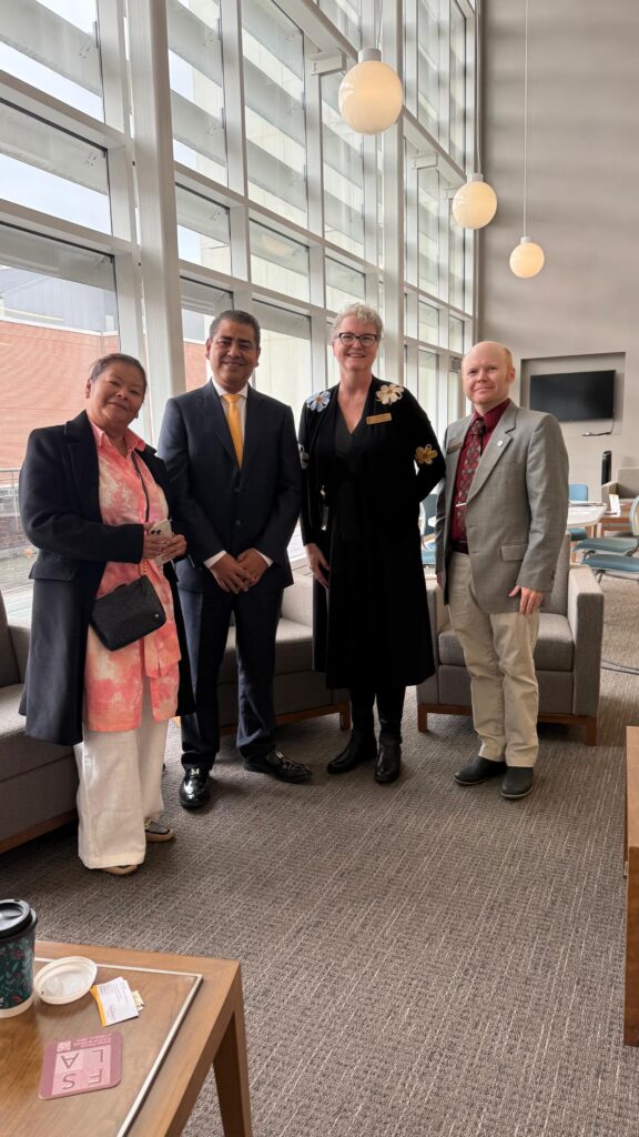 Posteriormente, los visitantes participaron en un recorrido por el Guerrieri Academic Commons guiado por Joan Ruelle, Dean of the Library, y realizaron una visita especializada al Nabb Research Center, un espacio de referencia para la investigación histórica y cultural de la región. La experiencia incluyó, además, un almuerzo en el Salisbury University Commons y un recorrido general por las instalaciones del campus.