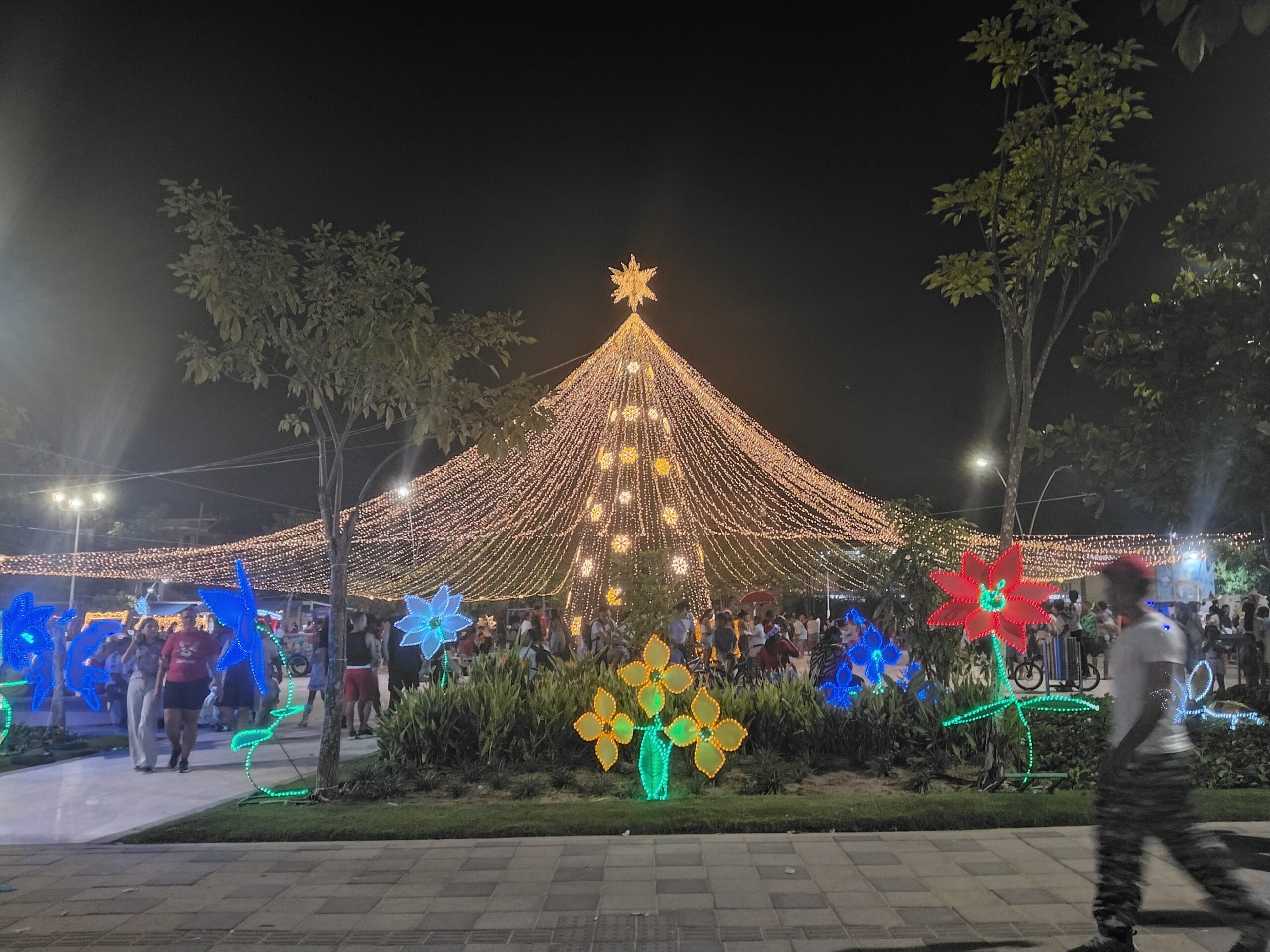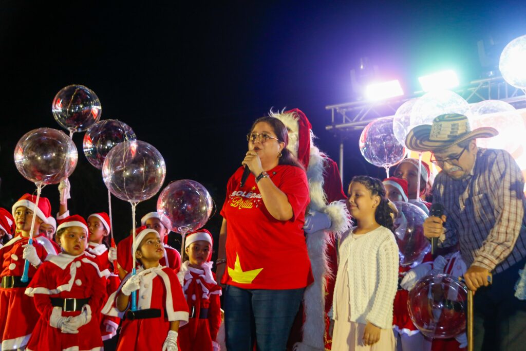 La alcaldesa Alcira Sandoval Ibáñez, lideró la jornada este lunes primero de diciembre, con el conteo regresivo qué encendió un imponente árbol de navidad en la Plaza Central de esta población.