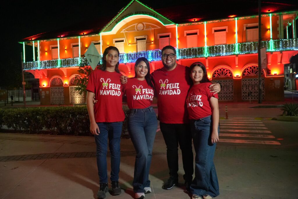 Acompañado de sus hijos, y su esposa, la gestora social Katherine De la Hoz, el alcalde Plinio Cedeño Gómez realizó un recorrido por los diferentes puntos habilitados con alumbrado navideño, dentro de los que se destacan parques y plazas principales.