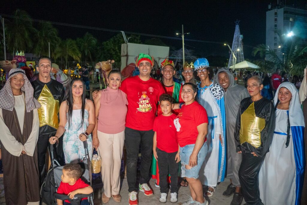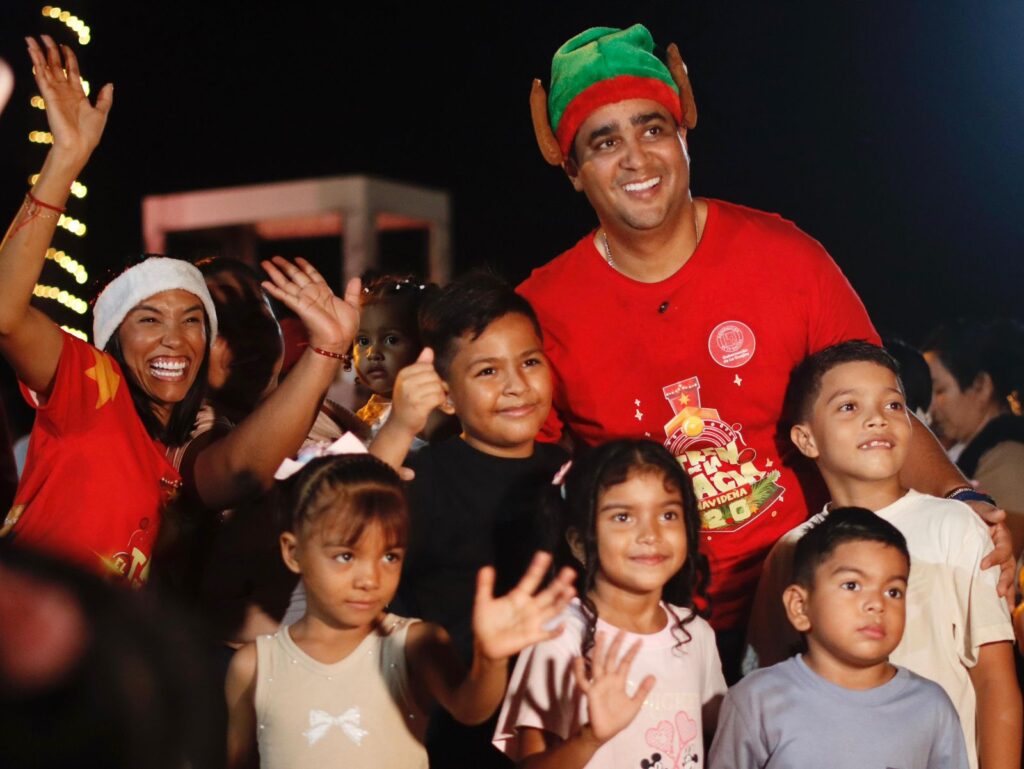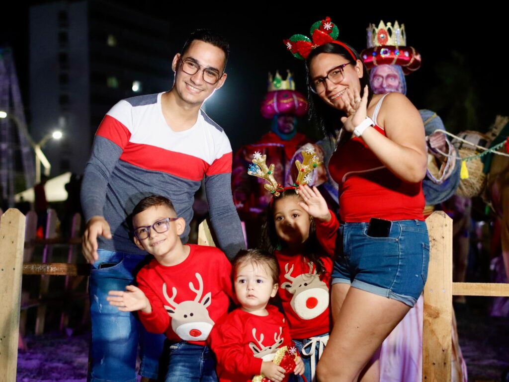 Entre risas, alegría, colores y el espíritu navideño que caracteriza estas fechas, el gobernador Jairo Aguilar Deluque, acompañado de su familia —la gestora social Sara Daza y sus hijos Monserrat y Jairo Raúl, encendió oficialmente la magia de la Navidad en la capital guajira con la inauguración de la Aldea Mágica, el escenario que marca el inicio de la ruta del Tren de la Magia 2.0.